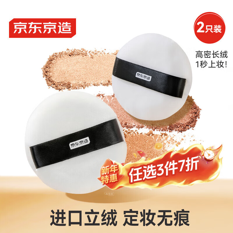 京东京造 云感蜜粉扑2只装 散粉定妆控油化妆植绒粉扑 日本进口双面立绒