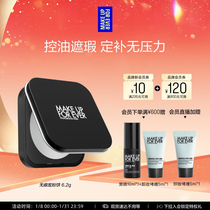 玫珂菲(MAKE UP FOR EVER)成毅代言全新轻轻紫蜜粉饼0.2浅紫色10g控油修黄提亮散粉定妆现货