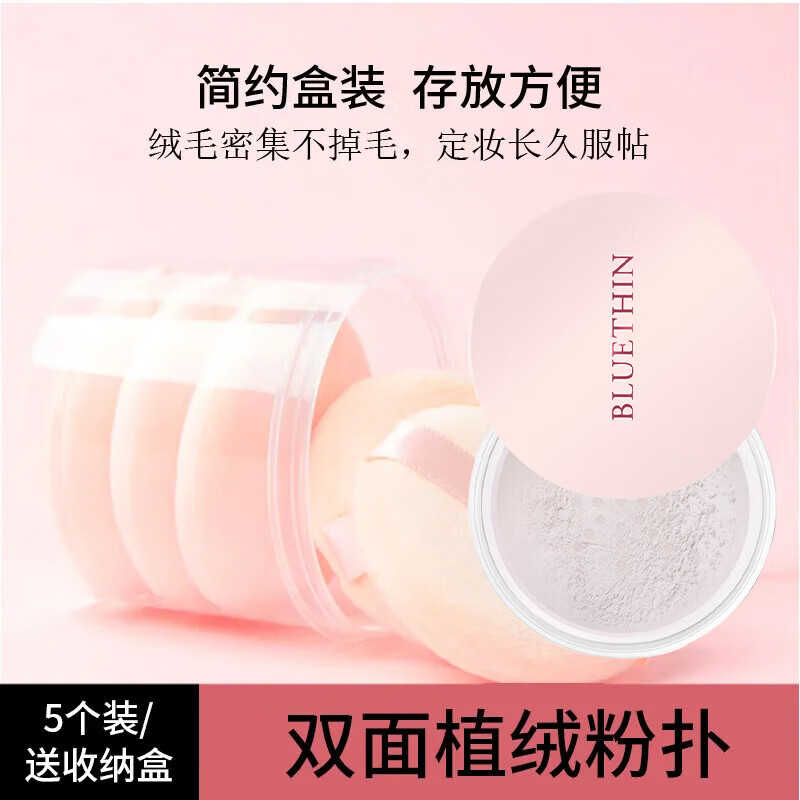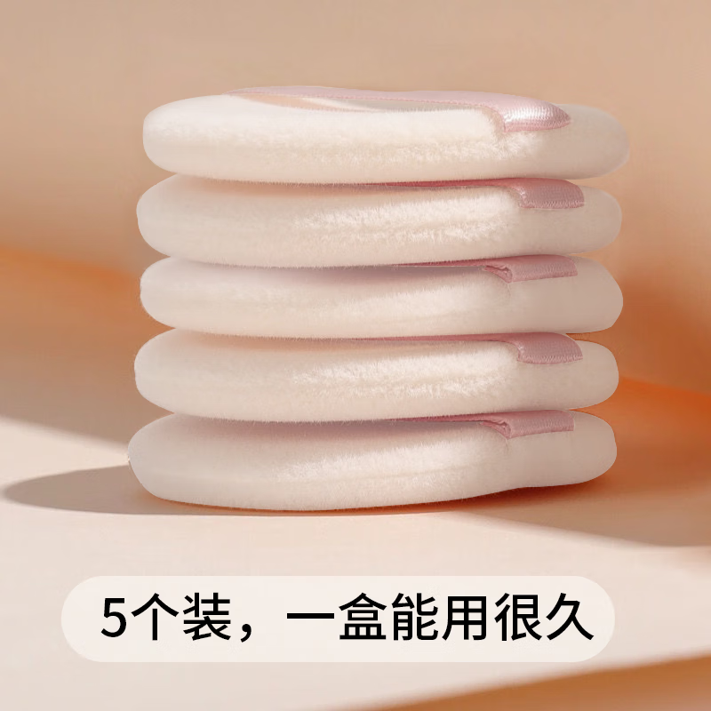 半人家植绒气垫散粉粉扑不吃粉毛绒大绒面蜜粉粉饼专用海绵面扑化妆工具 植绒粉扑 5枚 【配盒装】 超软不吃粉