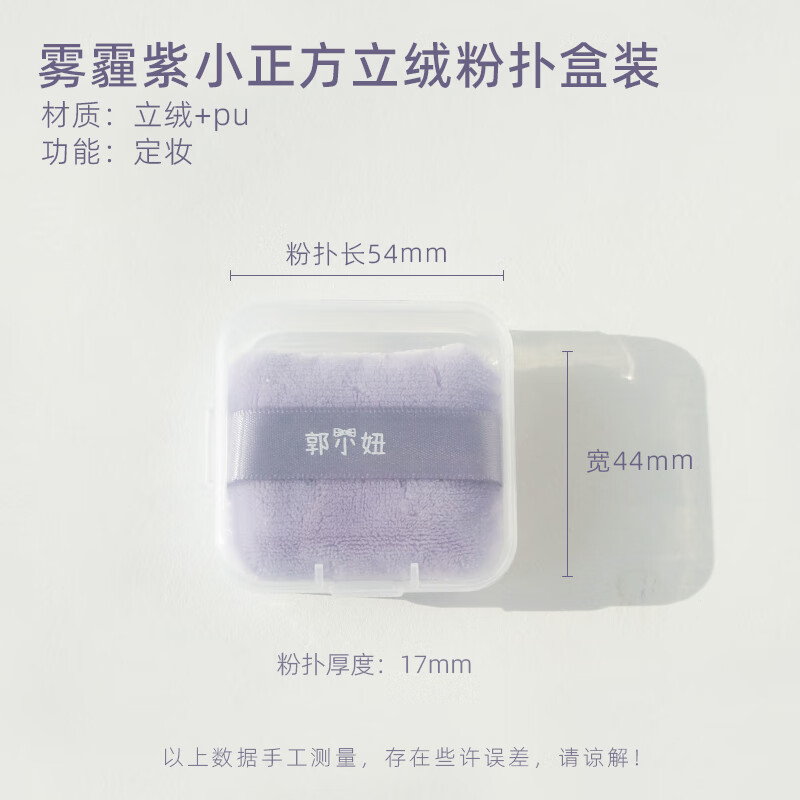 GUOXIAONIU郭小妞雾霾紫立绒散粉扑蜜粉粉扑定妆植绒柔软毛绒大绒面干粉饼 正方形立绒散粉扑 1枚 盒装
