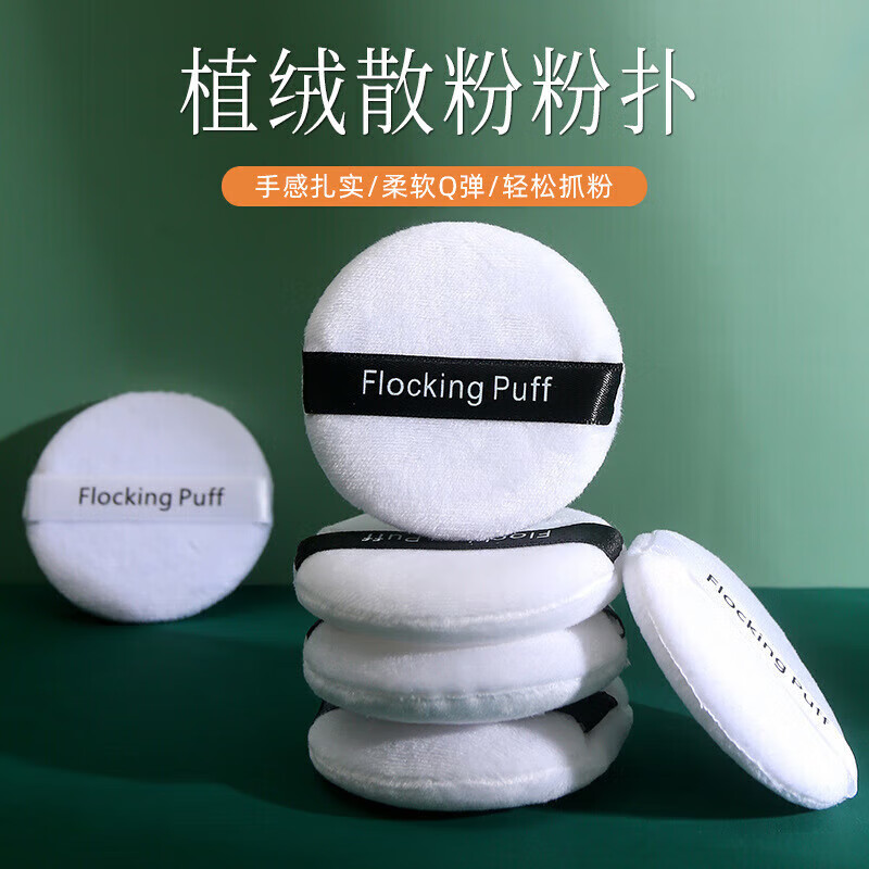 半人家植绒气垫散粉粉扑不吃粉毛绒大绒面蜜粉粉饼专用海绵面扑化妆工具 植绒粉扑 5枚 +散粉1盒 超软不吃粉
