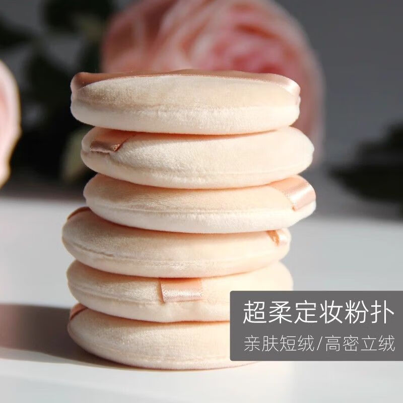 粉扑植绒带绒散粉蜜粉圆形方形粉饼定妆双绒面迷你小号 植绒肤色圆形薄款5.5cm 3个