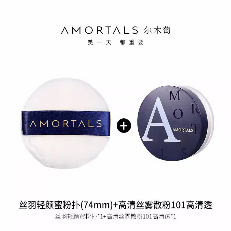 尔木萄粉扑植绒绒面散粉扑圆形化妆蜜粉扑不吃粉 蜜粉扑(74mm) 1枚 +高清丝雾散粉101高清透
