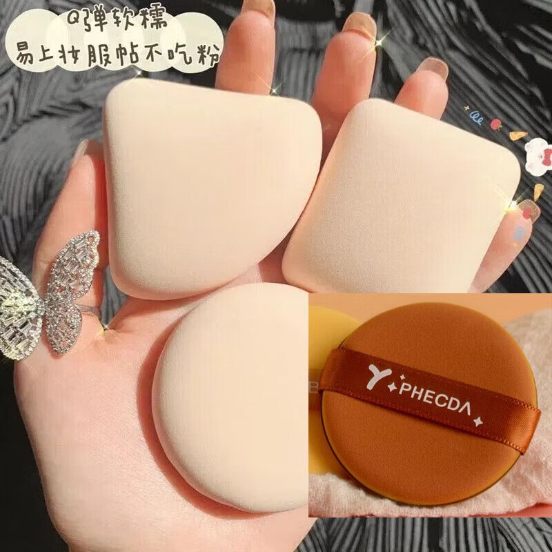 BLUETHIN【超值三个装】棉花糖气垫粉扑粉底液粉饼扑定妆海绵散粉不吃粉 【普通薄款】 1枚 (棕色) 无规格
