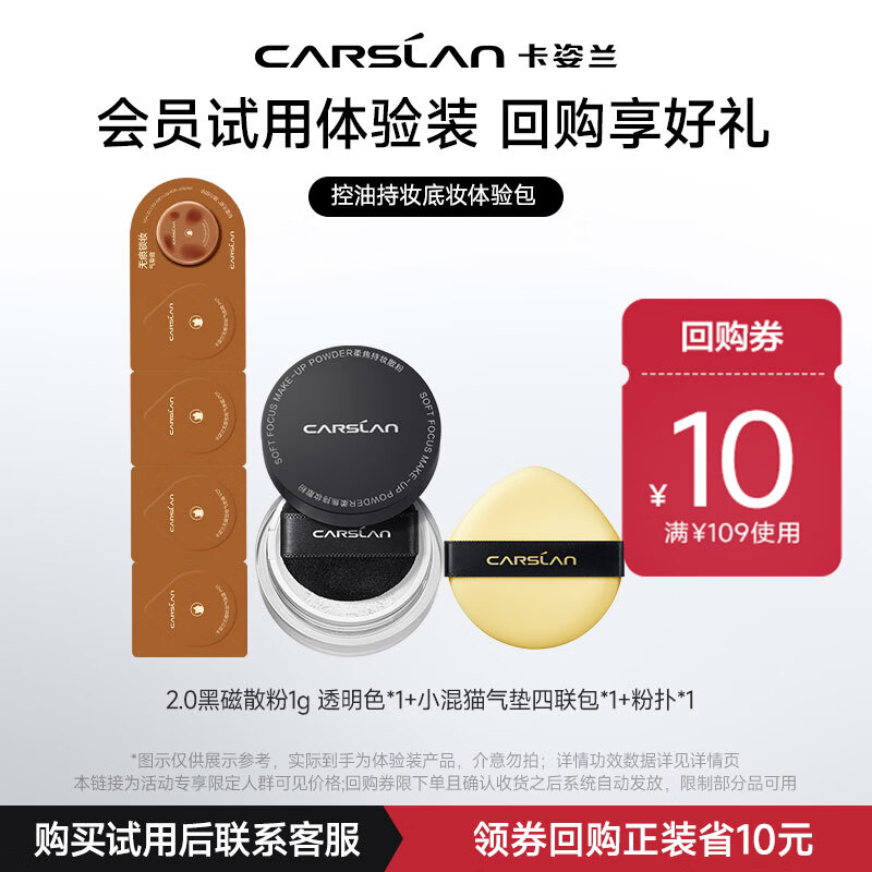 卡姿兰(Carslan)2.0黑磁散粉1g透明色+混猫气垫四联包+粉扑 试用专享新年礼物