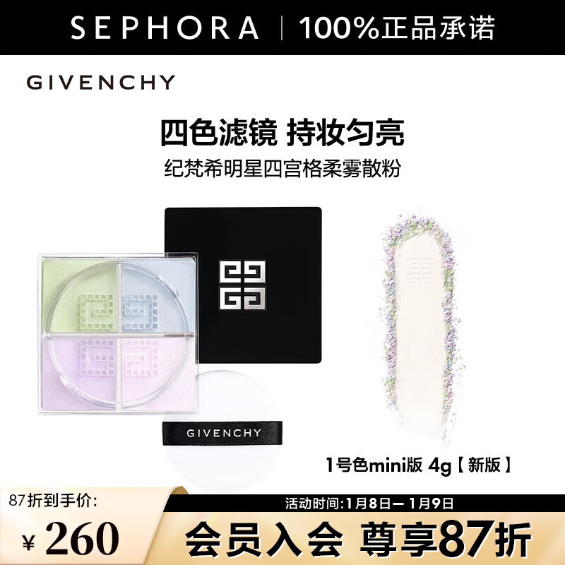 纪梵希(Givenchy)【MINI便携版4g】四宫格散粉1号小规格版随身便携定妆蜜粉哑光