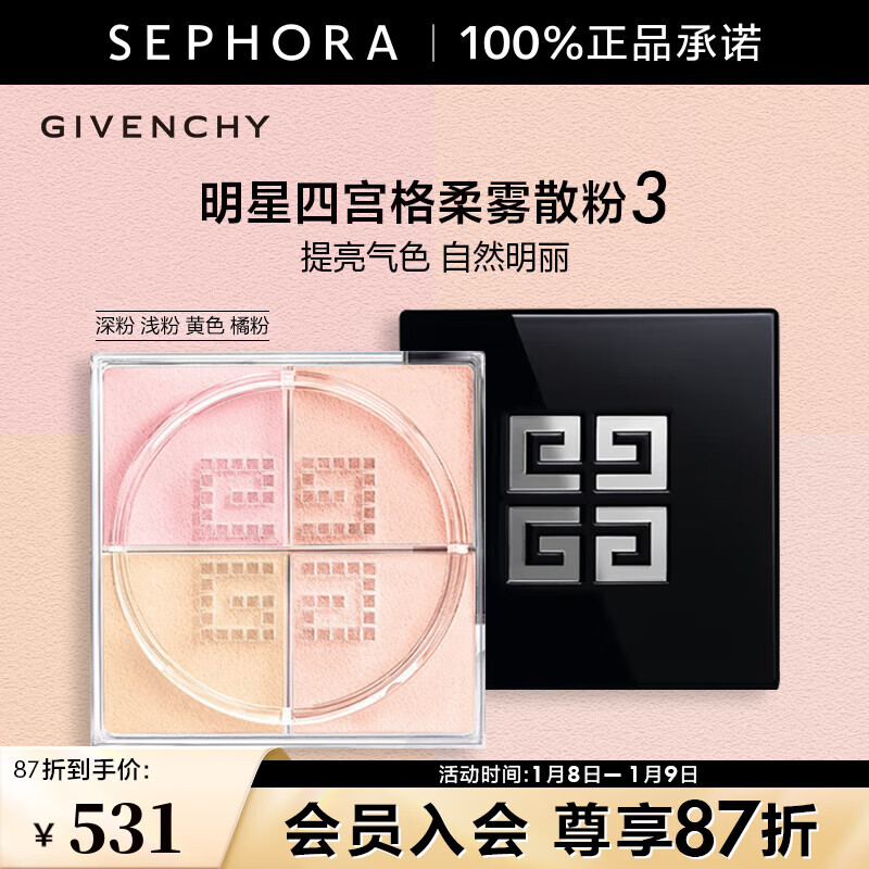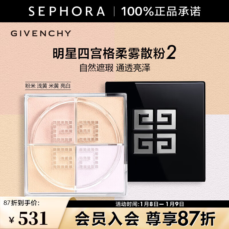 纪梵希(Givenchy)四宫格散粉1 双支囤货装定妆粉蜜粉饼哑光提亮新年礼物女生送闺蜜