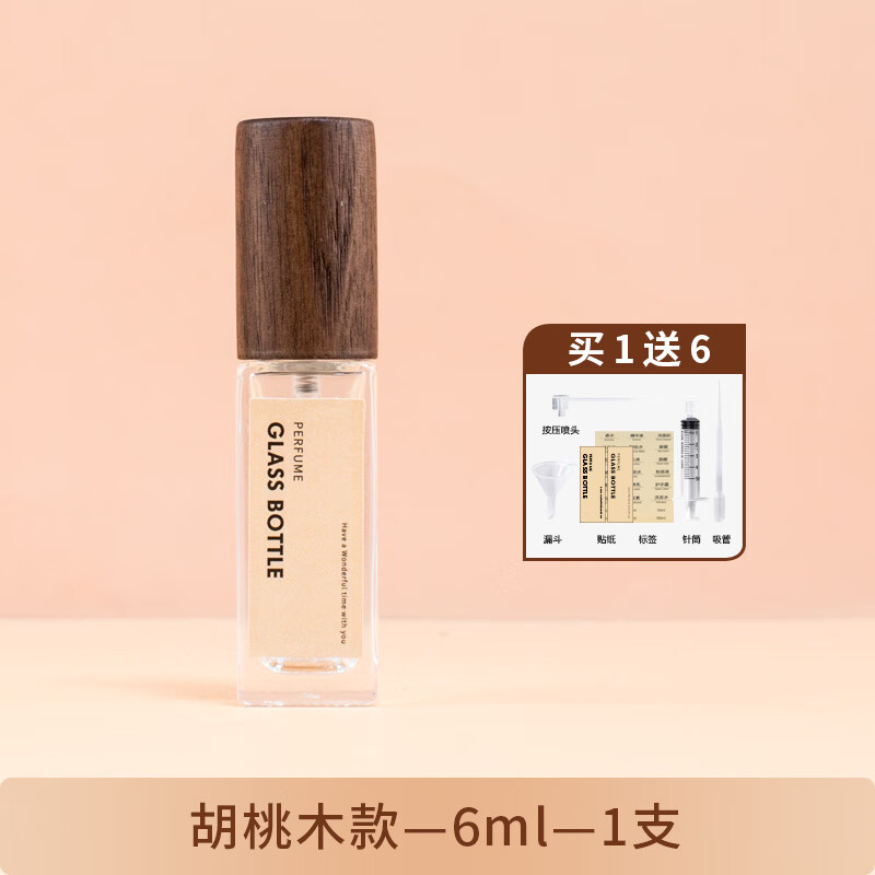 ilbu胡桃木香水分装瓶喷雾瓶高端便携式空瓶子玻璃瓶旅行装实木按压瓶 胡桃木/送6件套 6ml 1瓶