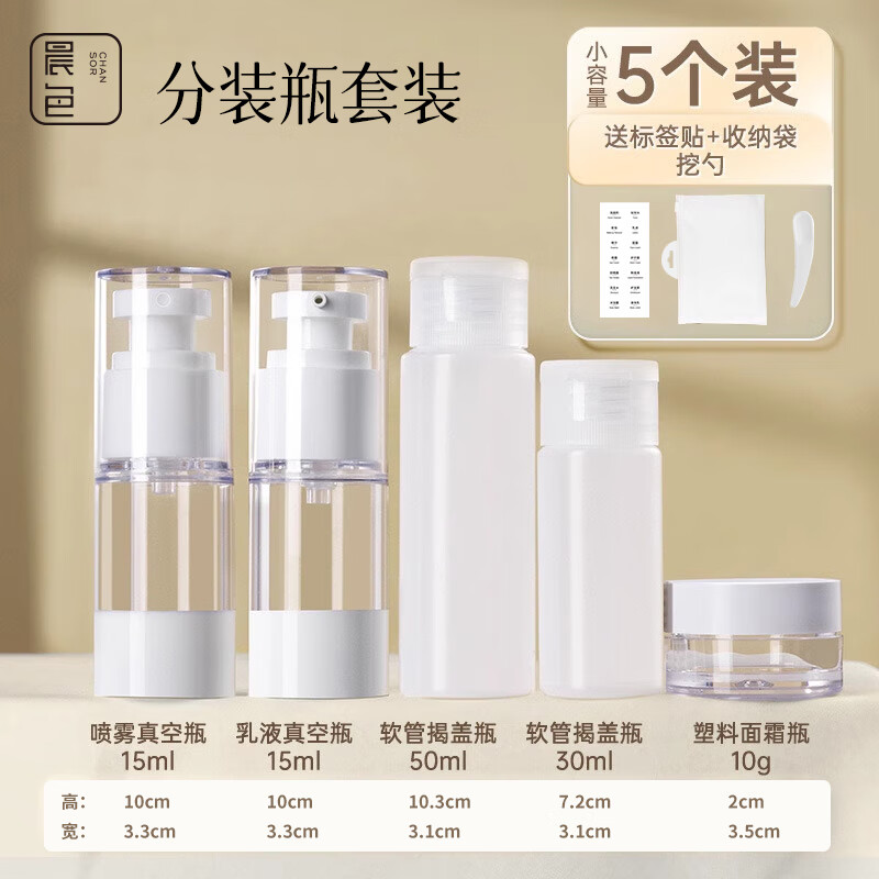 晨色分装瓶5件套喷雾瓶按压式旅行装可上飞机沐浴洗发化妆品面霜乳液