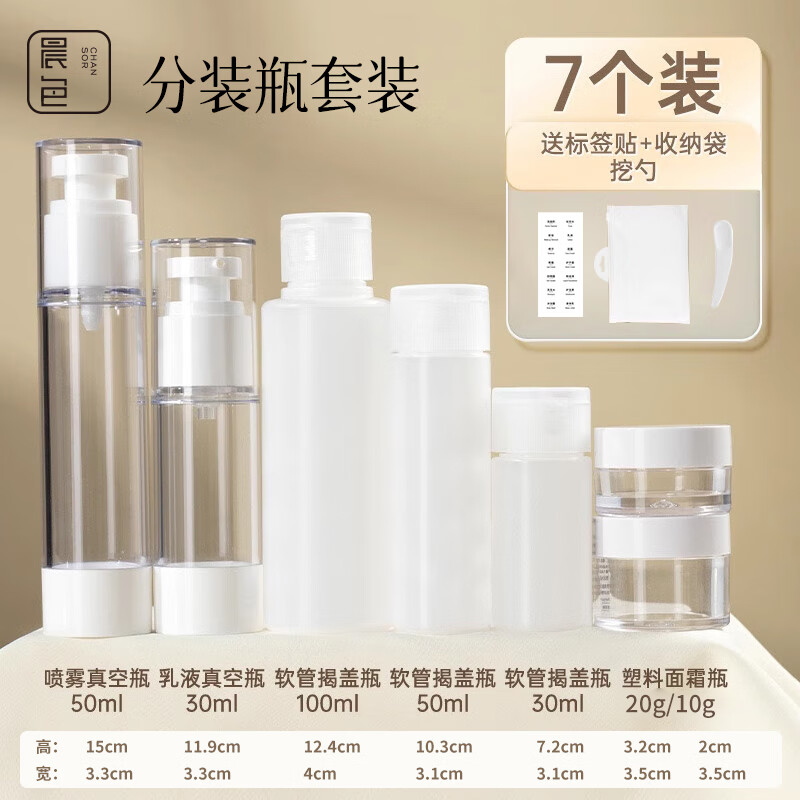 晨色分装瓶按压式旅行装可上飞机沐浴洗发水面霜乳液真空分装7件套