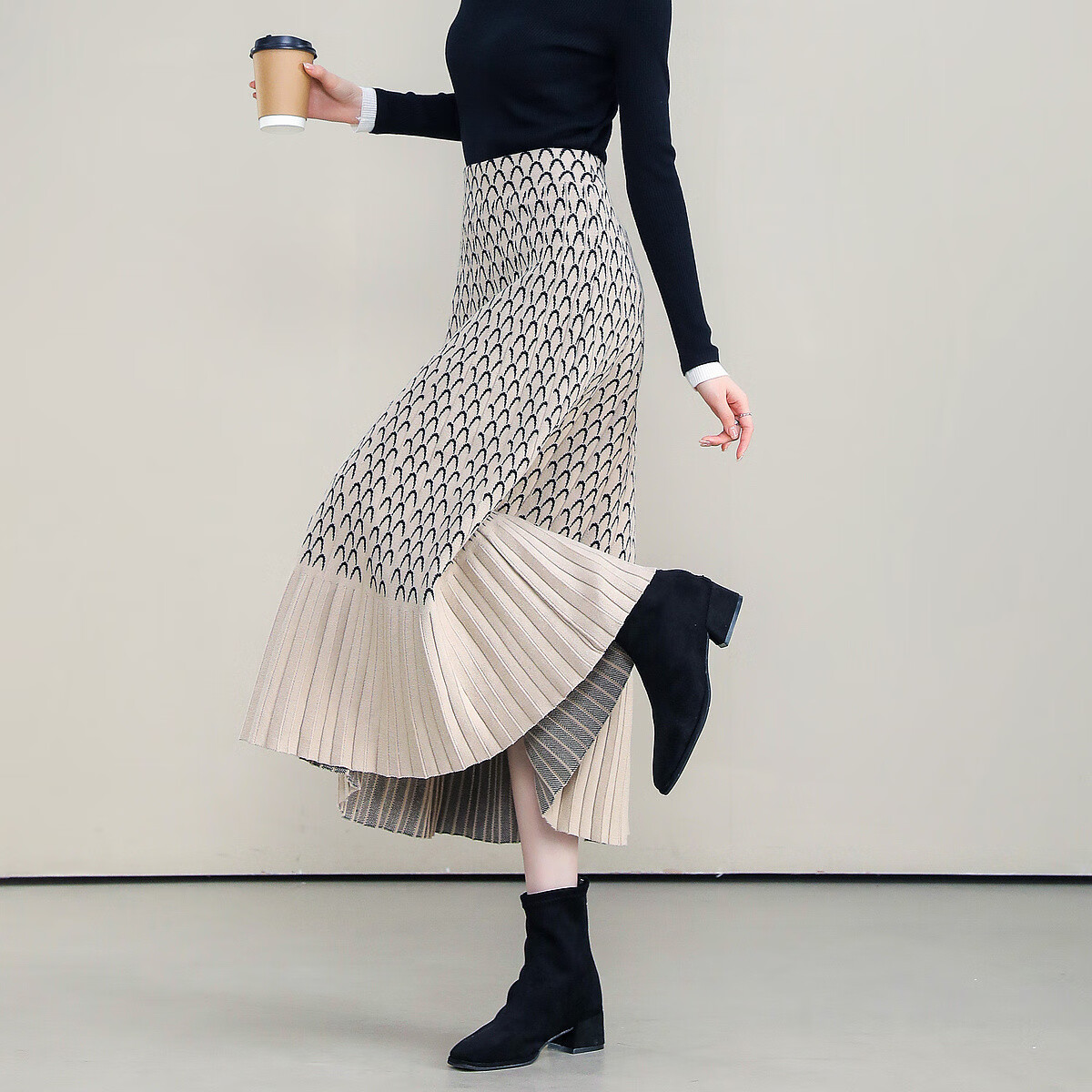 德玛纳美人鱼针织半裙冬季优雅风A字遮肉好搭半身裙女中长款 杏色 M