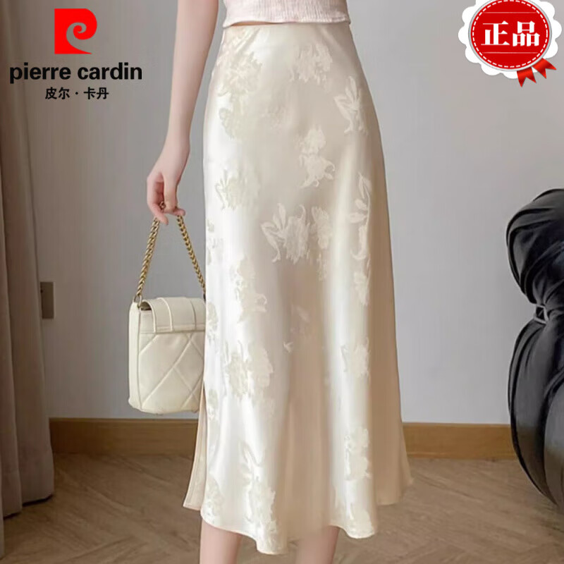 皮尔卡丹(pierre cardin)新式中国风小个子开叉丝滑缎面鱼尾裙女2025春夏醋酸提花半裙女 2089杏色提花半身裙 L
