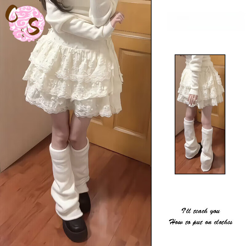 CS.LION辣妹纯欲蕾丝边蛋糕裙女夏季甜美高腰设计感小个子奶油蓬蓬半身裙 奶杏色 S 80-95斤