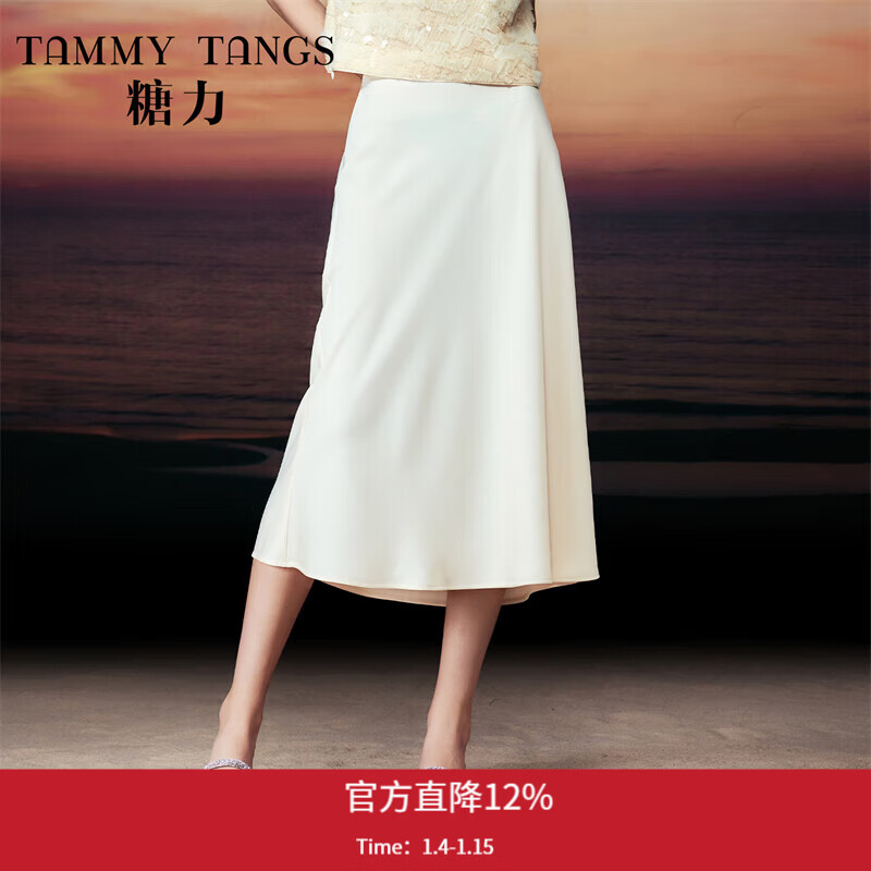 糖力【商场同款】夏季新款优雅醋酸缎面半身裙女中长款直筒裙 杏色 常规 M