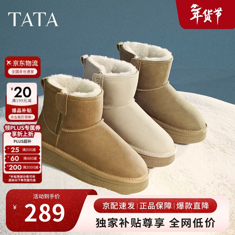 他她TATA暖暖靴冬季加绒雪地靴女靴厚底短靴保暖棉鞋WDX26DD4 杏色 36