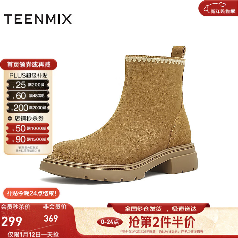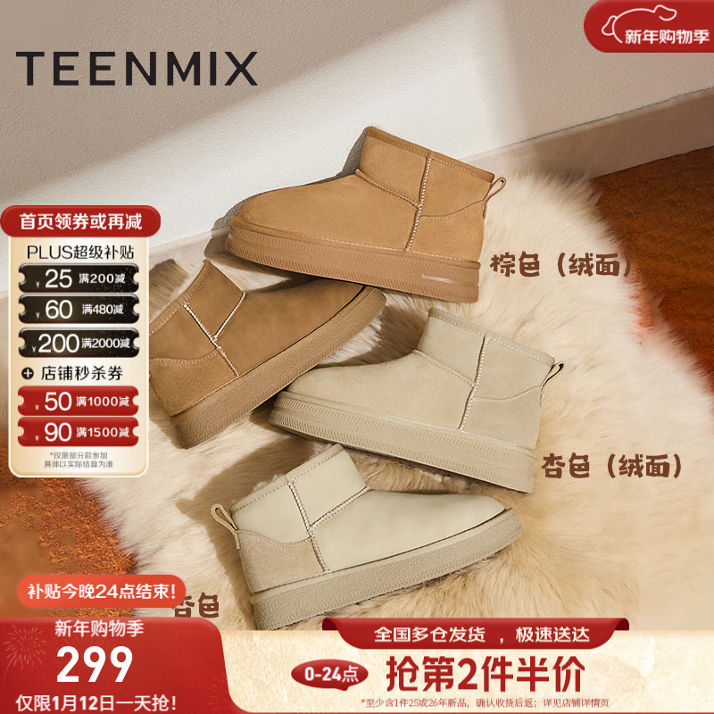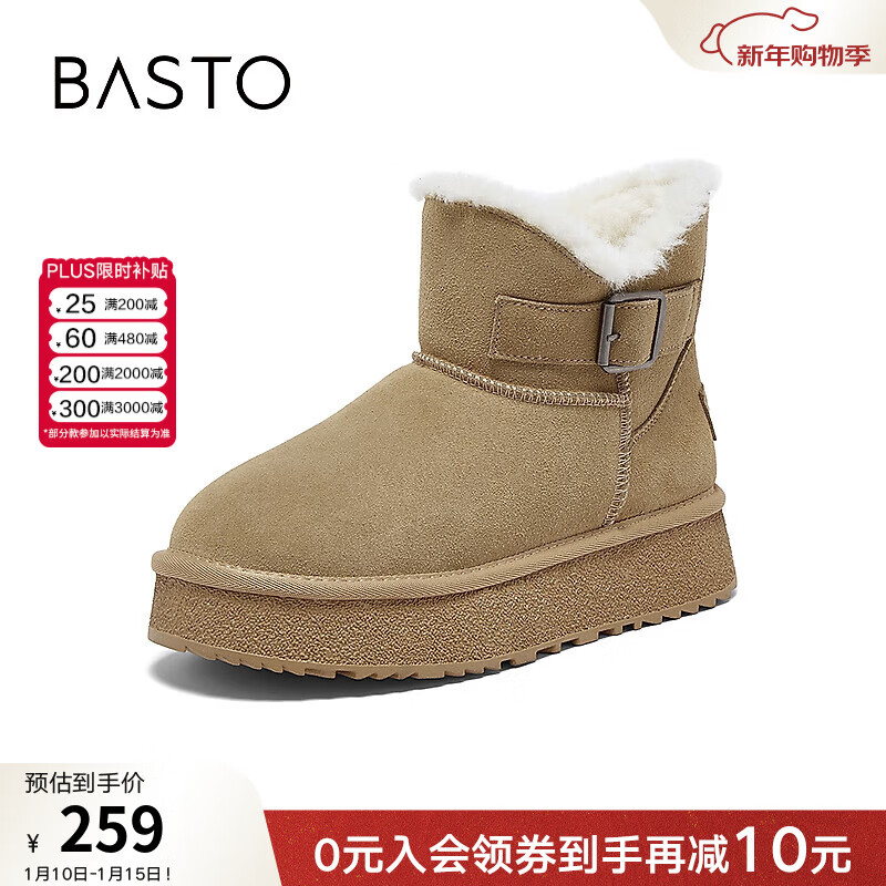 百思图2025冬季新款雪地靴时尚简约休闲厚底女短靴V0808DD5【预售】 杏色 38