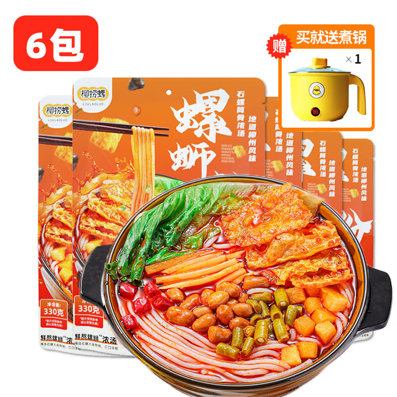 柳州螺蛳粉330g*6袋整箱装正宗螺丝粉酸辣螺狮粉速食旗舰店 原味主播330g*6袋
