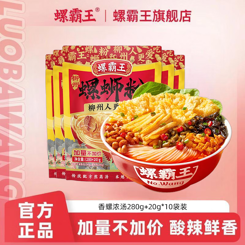 螺霸王螺蛳粉原味螺蛳粉柳州螺蛳粉正宗螺丝粉酸辣粉速食300g 280g+20g香螺浓汤*5袋