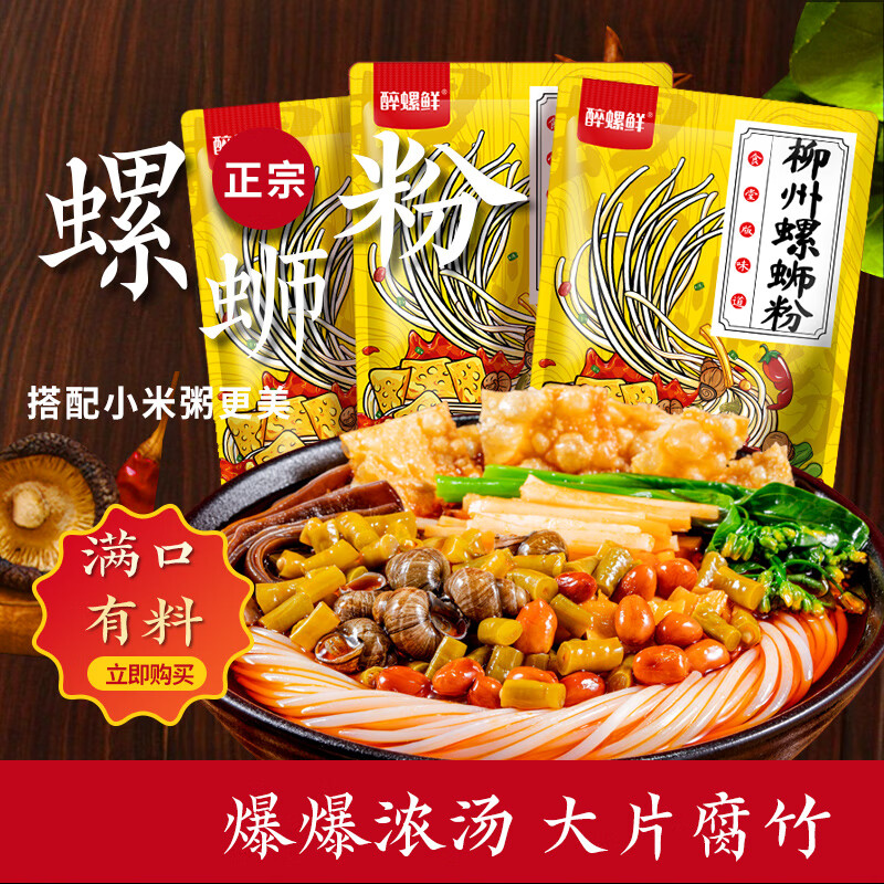 代购螺蛳粉216g*5袋广西柳州螺狮粉速食方便宵夜螺蛳 李子柒螺蛳粉216g*5袋
