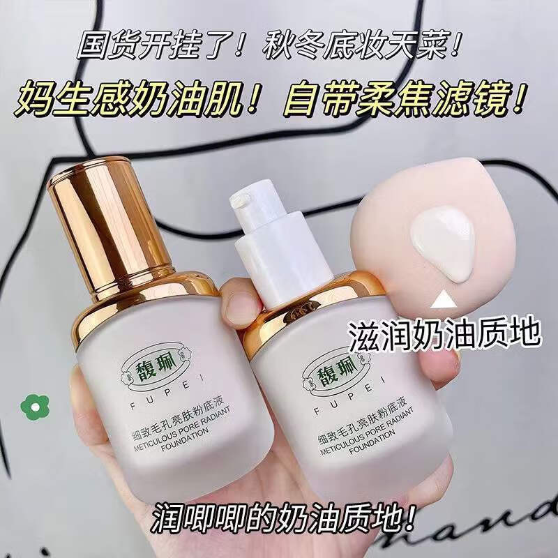 馥佩细致细毛孔亮肤粉底液保湿提亮遮瑕修饰肤色润肤不油腻不卡粉 自然色粉底液 洁面乳