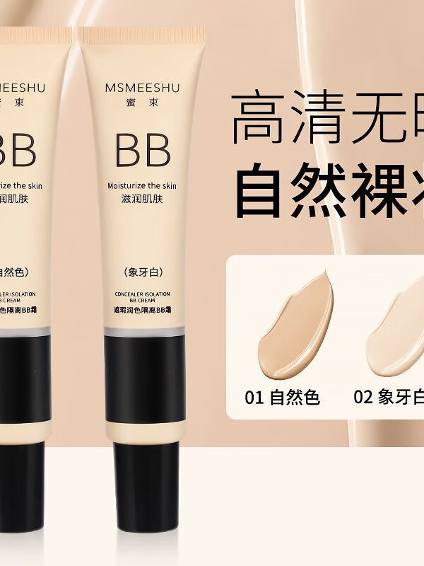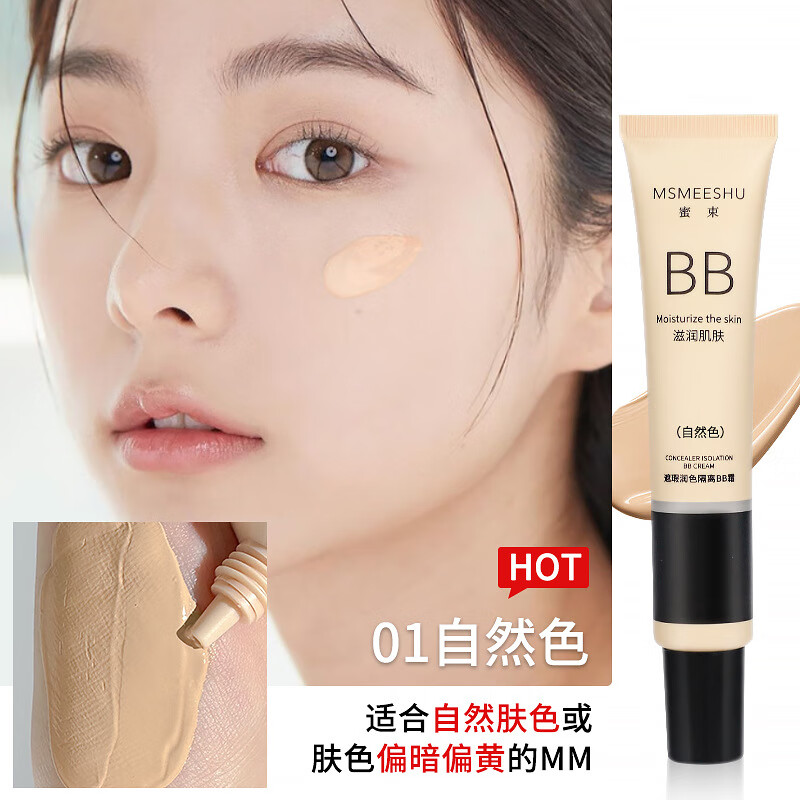 蜜束(MSMEESHU)粉底液BB霜提亮肤色隔离妆前乳持久不油腻素颜霜 01#自然色-粉底液 30g