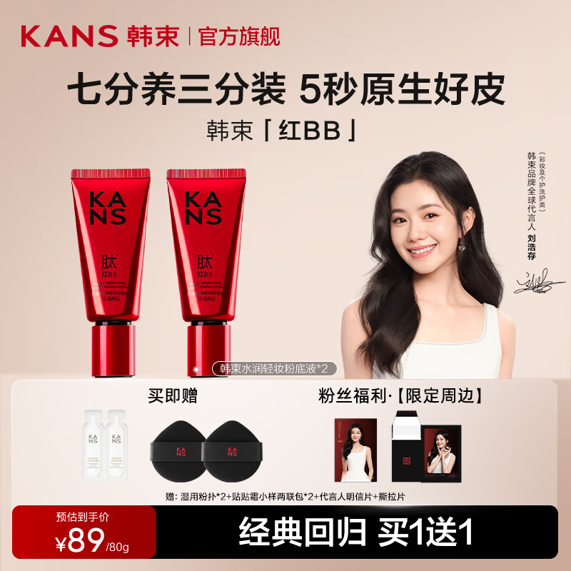 韩束(KanS)红bb霜遮瑕隔离霜保湿提亮肤色粉底液持久服帖不油腻刘浩存同款 【刘浩存同款】大红bb霜自然白80g