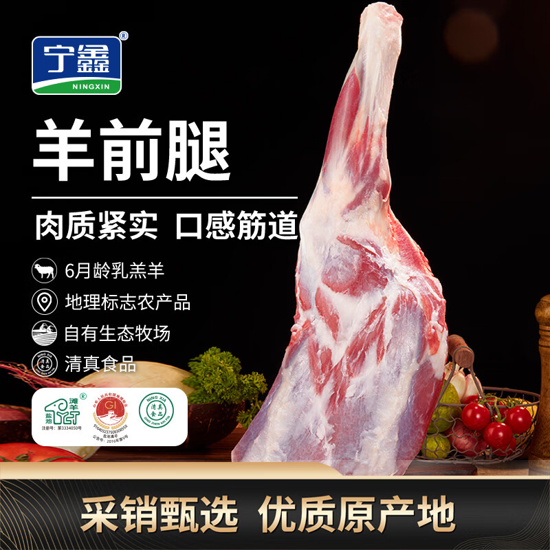 宁鑫 宁夏盐池滩羊 原切整只羊前腿净重2斤 地理标志产品 清真食品