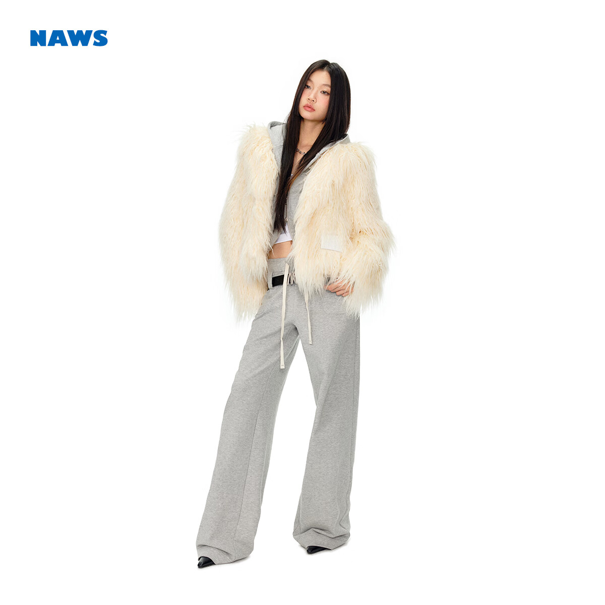 NAWS 流光回响 自带柔光滤镜 翻折领环保滩羊毛皮草外套 温莎米黄(现货) S