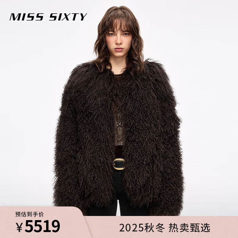 MISS SIXTY2025冬季新款滩羊毛皮草外套女气质V领宽松轻奢高级感 深棕 XS