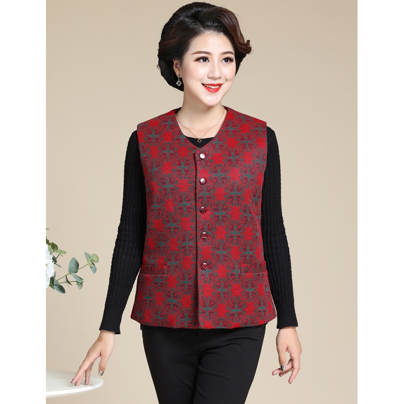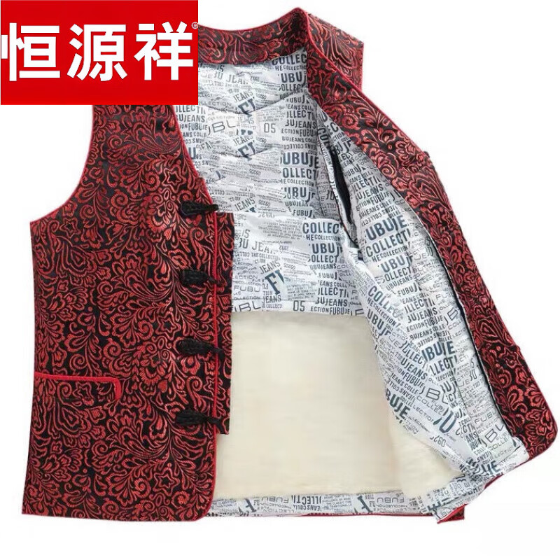 恒源祥中老年滩羊毛羊皮马甲皮毛一体背心坎肩女大码皮马甲妈妈唐装洋气 暗红花-羊剪绒-活里活面-女马甲 120斤
