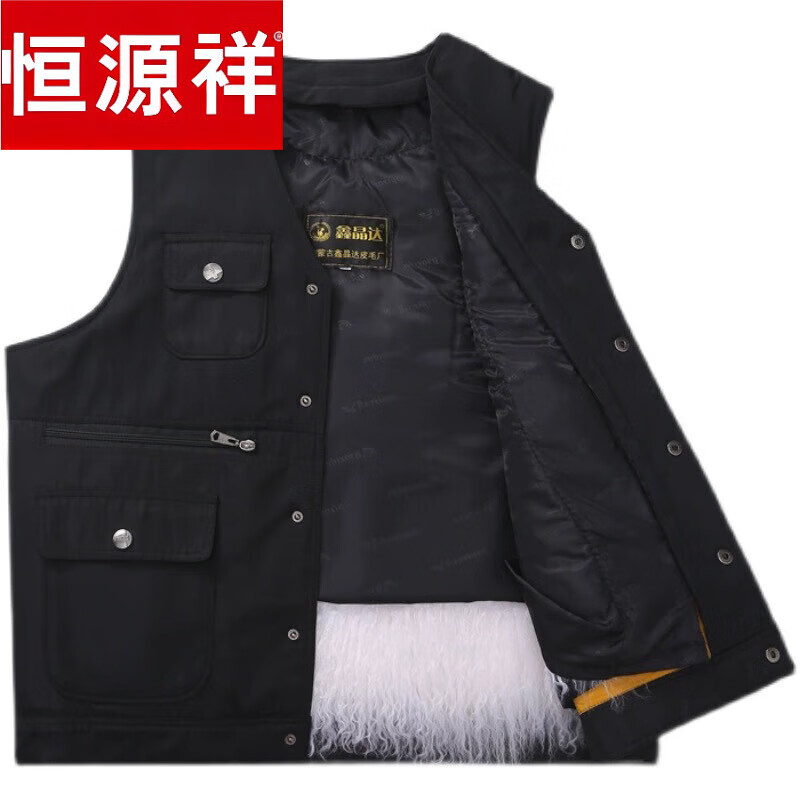 恒源祥新款秋冬季皮毛一体中老年马甲皮质草背心加厚坎肩马夹爸爸妈 宁夏滩羊毛(可拆卸) 3XL 适合(140/160斤)