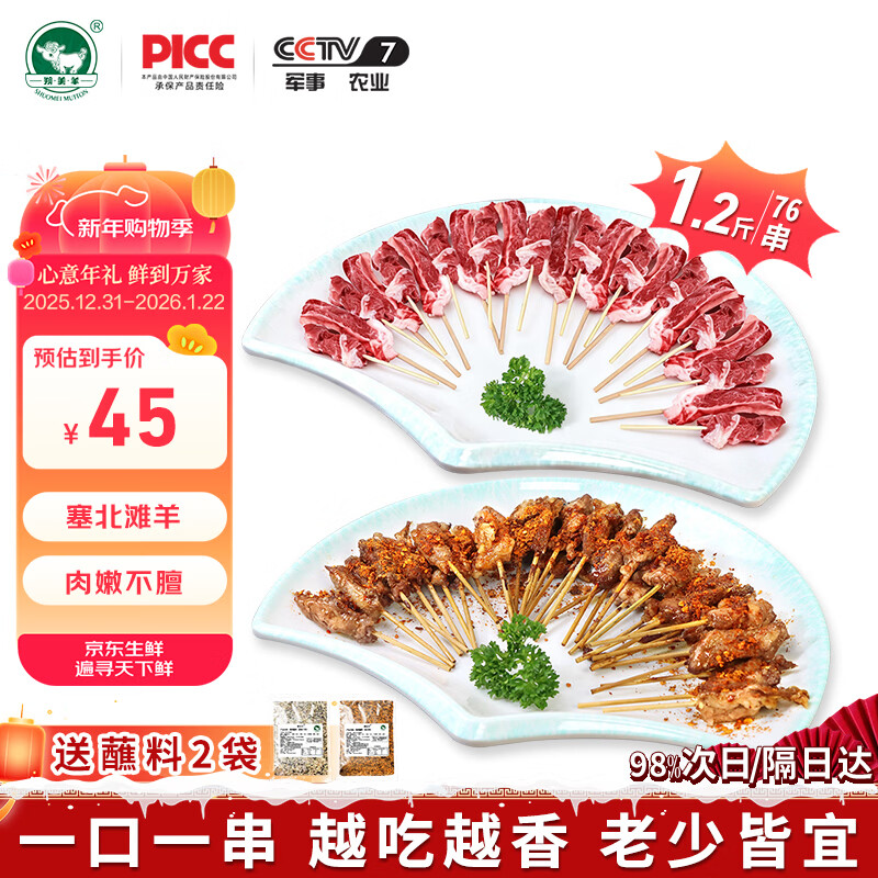 午羊 宁夏滩羊肉 生鲜纯手工羊肉串 原切新鲜羔羊后腿肉撸串烧烤食材 【店长推荐】法式羊排12支