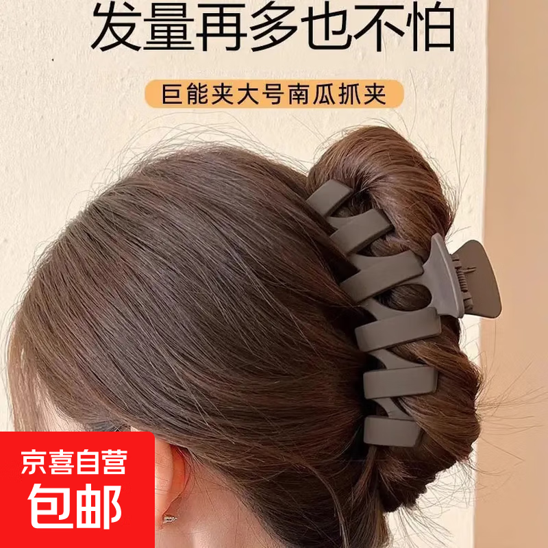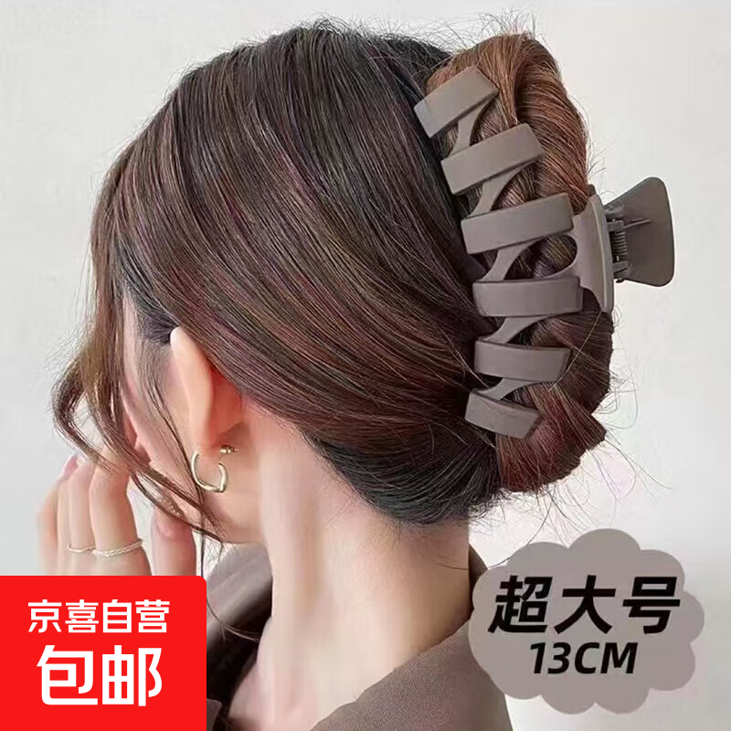 高级感黑色珍珠大号抓夹女后脑勺头饰发夹发量多鲨鱼夹202 4新款 咖色M形抓夹【13cm】