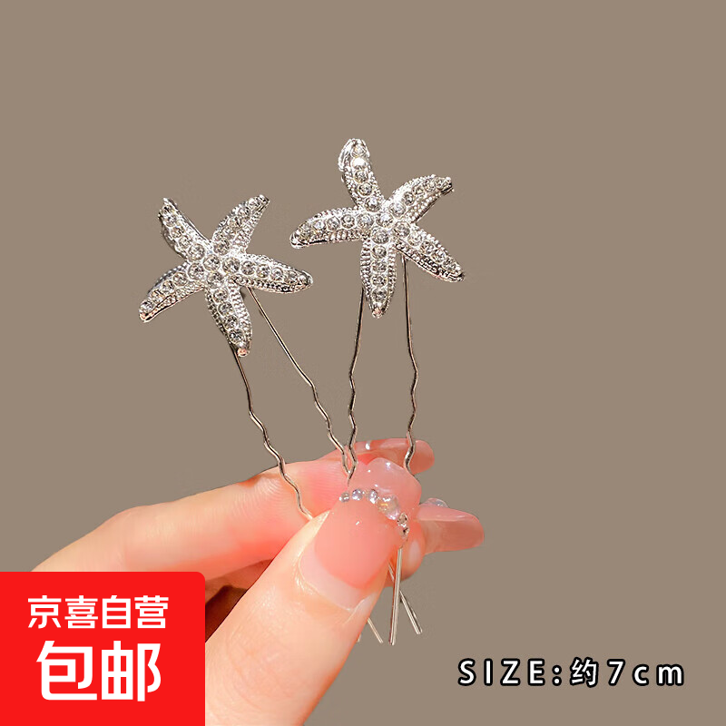 珍珠U型夹盘发簪插梳气质发夹女后脑勺盘发神器丸子头发饰插针 银色海星2件套