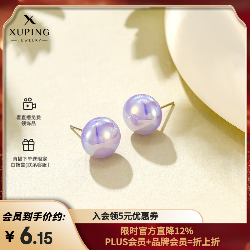 XUPING旭平首饰时尚小众设计人鱼姬仿珍珠耳钉耳饰耳夹简约日常送女朋友 紫色耳钉[约12MM]