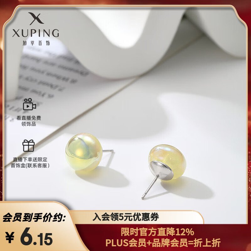 XUPING旭平首饰时尚小众设计人鱼姬仿珍珠耳钉耳饰耳夹简约日常送520礼物 黄色耳钉约12mm