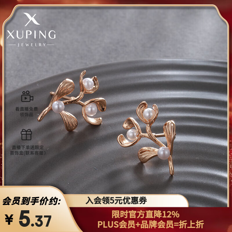 XUPING旭平首饰合金时尚气质花朵仿珍珠设计耳钉送新年礼物X000641911 耳钉