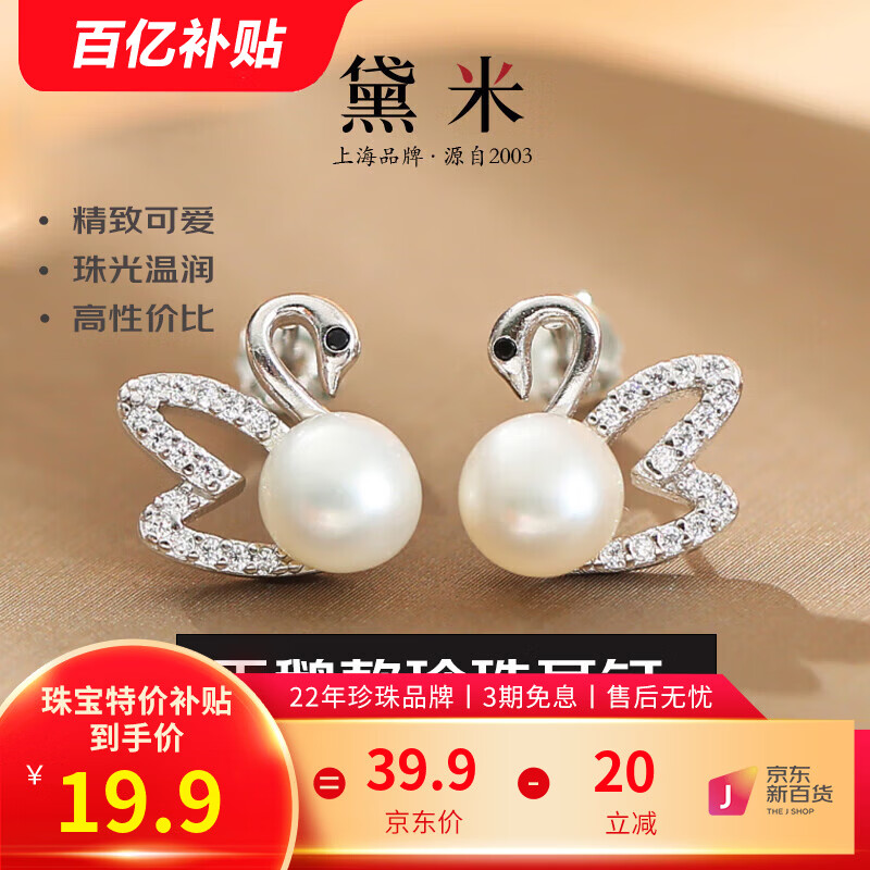 黛米 天鹅之恋耳钉 白色淡水珍珠耳钉天鹅款耳环时尚耳饰女送女友礼物 6-7mm/白色