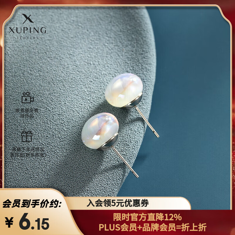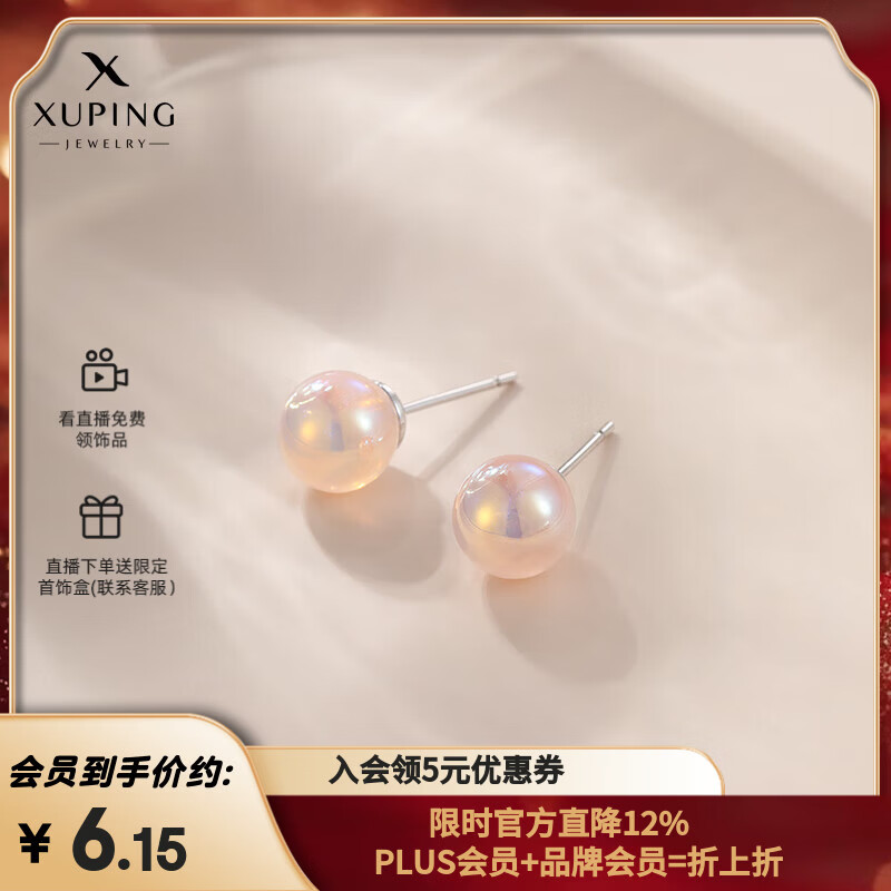 XUPING旭平首饰时尚小众设计人鱼姬仿珍珠耳钉耳饰耳夹简约日常送女朋友 白色约6mm耳钉款