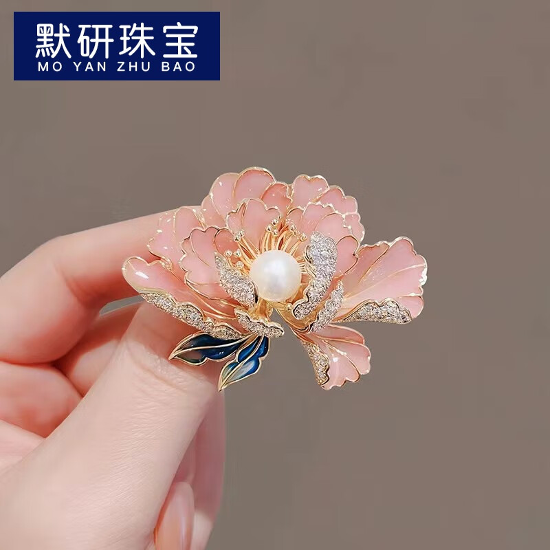 默研(MOYAN)国风牡丹花胸针女精致珍珠旗袍汉服胸花外套大衣别针配饰 粉红色 B01-301