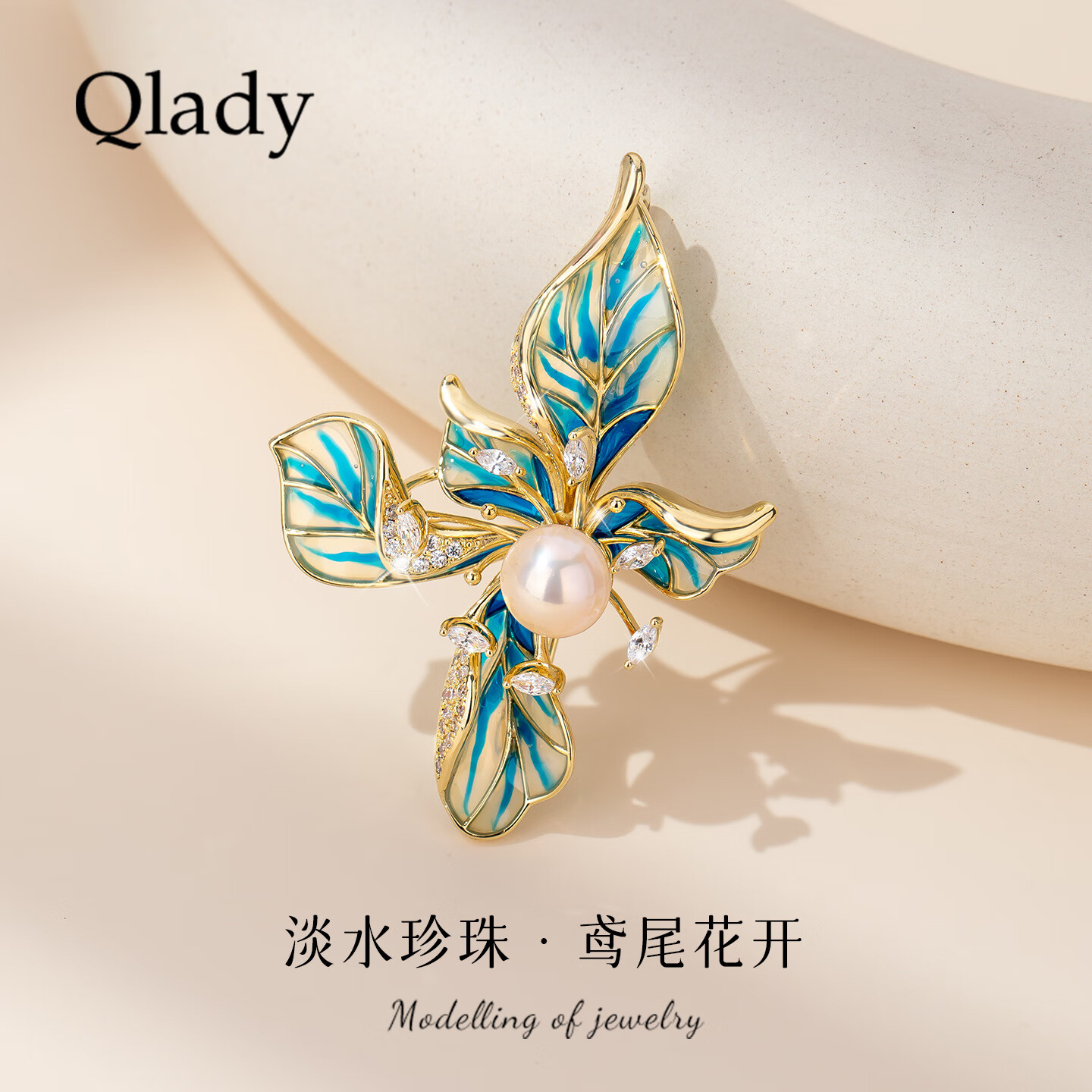 Qlady珐琅彩鸢尾花珍珠胸针高级感轻奢女款2025新款别针领针新年礼物