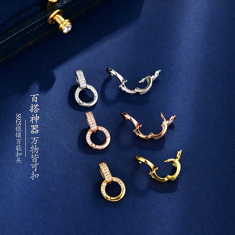 南有栗925银万能扣头卡扣吊坠扣连接扣珍珠项链手链接头扣DIY饰品配件 925银微镶万能扣-黄金色