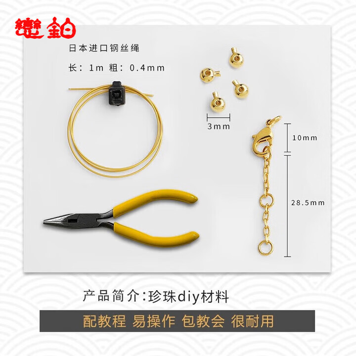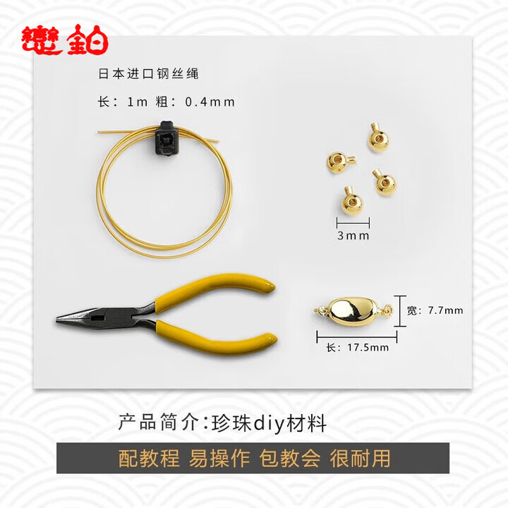 恒久叶品质珍珠项链扣头配件线diy材料镀18k金穿小米珠专用串手链 龙虾扣diy材料(含钳子)