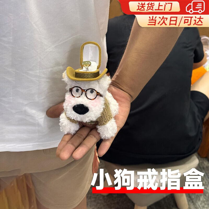 威尔基戒指盒机关求婚戒指礼盒西高地小狗惊喜礼物盒创意耳钉盒子钻戒盒 小狗戒指盒【咖色】