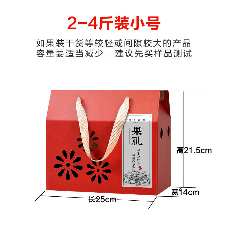 山头林村水果礼盒空盒牛皮纸包装盒橙子苹果枇杷沃柑苹果包装纸箱定制 红色镂空小号001贴纸 10个空盒 0x0x0cm 礼盒包装盒