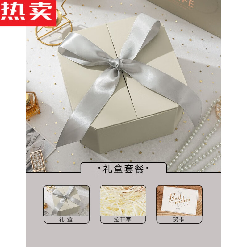赛乐透品质礼盒空盒包装女友伴手礼品包装盒礼物盒空盒子生 小号15*15*10可装马克 灰八角拉菲草+贺卡无礼袋
