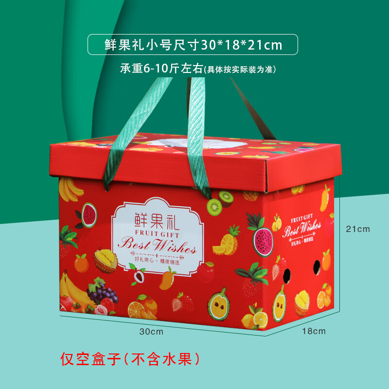 下雨荷通用水果礼盒包装盒5-10斤装空盒新款高档手提纸箱天地盖礼盒定制 鲜果礼 红色小号(6-10斤装) 1个空盒