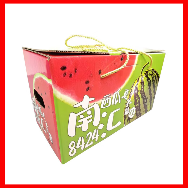 何佳功西瓜手提礼盒空盒 8424西瓜包装礼盒空盒子水果礼盒纸箱手提盒新 绿色 小号装两粒瓜15斤左右 加厚瓦楞