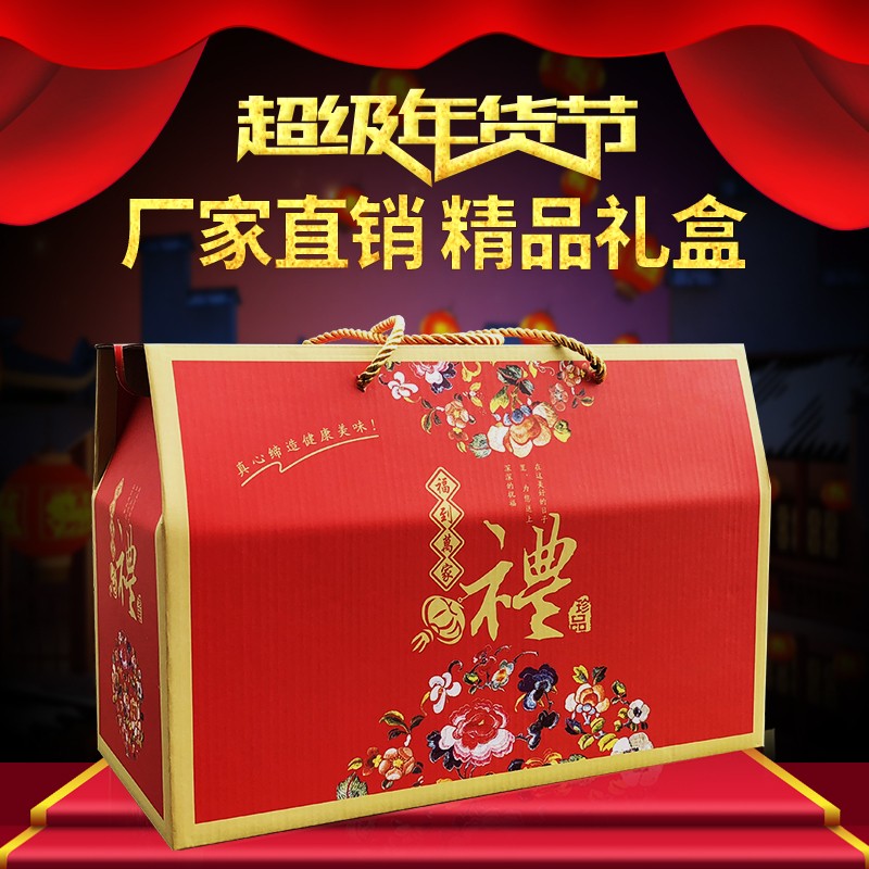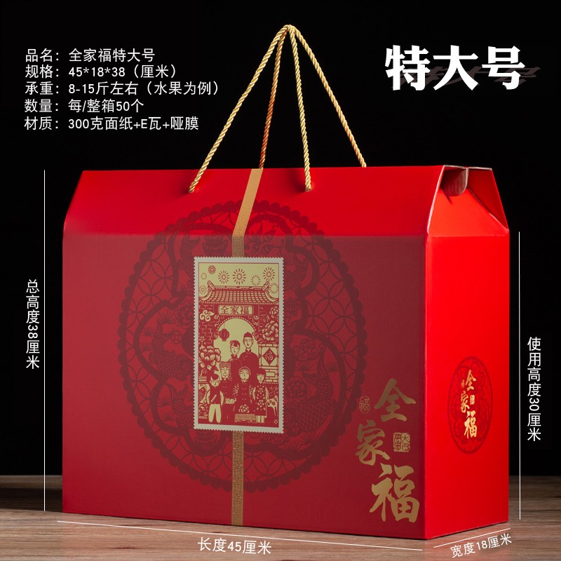 霏语 通用春节年货包装盒年货礼品盒干果红枣水果熟食空盒新年礼盒 全家福特大号