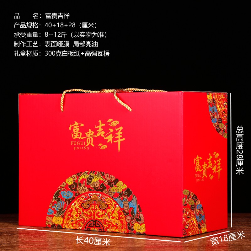 霏语 通用春节年货包装盒年货礼品盒干果红枣水果熟食空盒新年礼盒 富贵吉祥大号